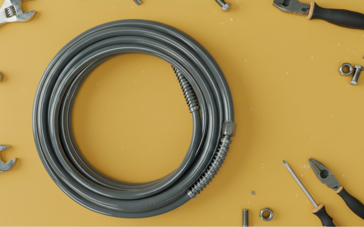 Рукав окрасочный 1/4" х 15 м, Р.Д. 210 бар, с пружинами AS, DN-4,8 мм (эластичный, серый)